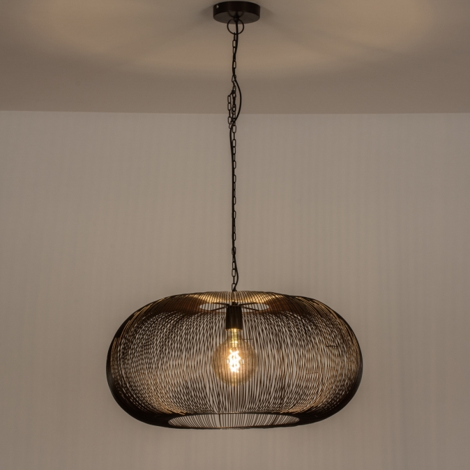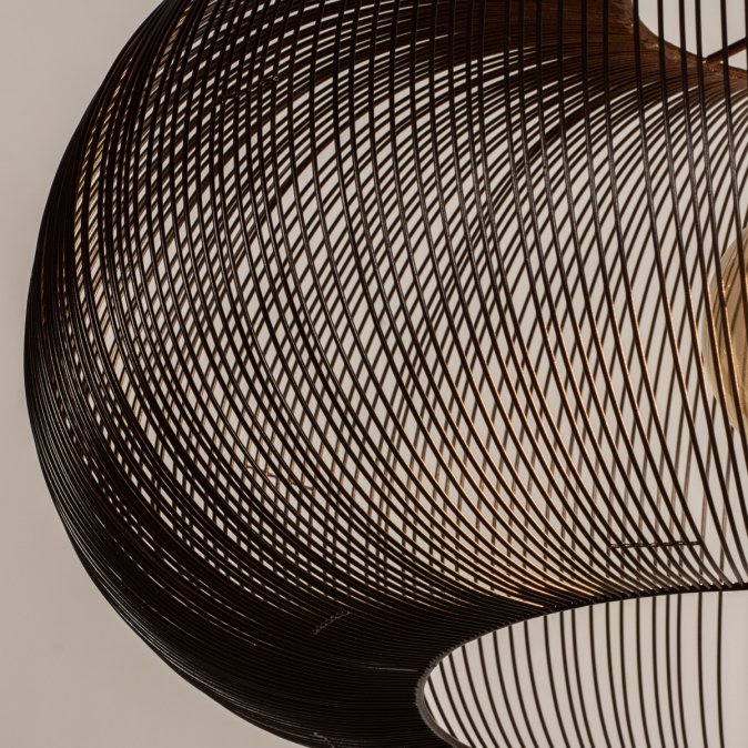 Jak krásná je tato lampa vyrobená z hnědých kovových drátů a jemných svarů. Hnědá závěsná lampa se skládá z kovových proužků, které leží blízko sebe. Tato luxusní lampa se přizpůsobí Vašemu interiéru. Luxusní v hotelově elegantním stylu bydlení, robustní v industriálním designu, teplé v japonském interiéru a kompletně „boho“ v bohémském stylu. Tuto hnědou závěsnou lampu můžete opravdu zkombinovat s jakýmkoli stylem interiéru. Ať už je svítidlo zavěšeno kdekoli, jeho krásná barva vytvoří teplou atmosféru v jakékoli místnosti a stylu domova.
